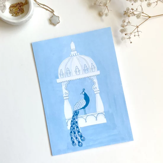 Dessiné à la main et imprimé sur un papier texturé. Vient avec une enveloppe blanche.